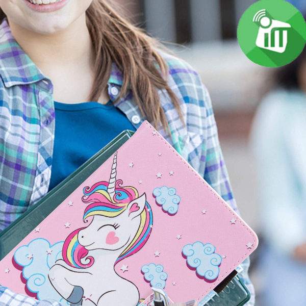 Ultra thin and lightweight hard back design does not add volume but with great protection to your tablet. The integrated magnetic strip provides automatic on and off function with easy on and off of this tablet case. It activates automatically and puts your device to sleep. Easy handling and energy saving.
