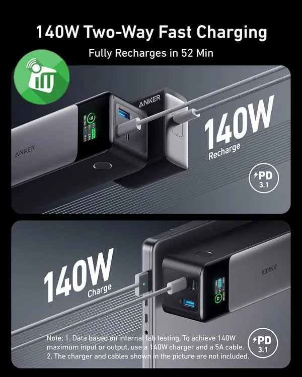 - Quickly recharge the portable charger or get a 140W ultra-powerful charge