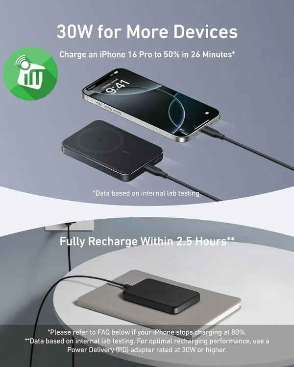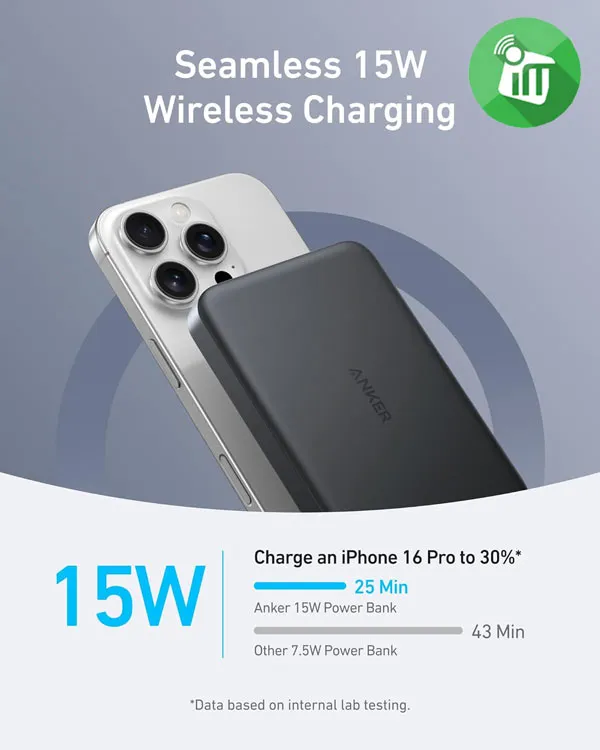 Anker’s proprietary Wireless PowerIQ™ technology delivers higher efficiency through a high-conductive aluminum Qi2 module that ensures consistent 15W charging and superior heat management.