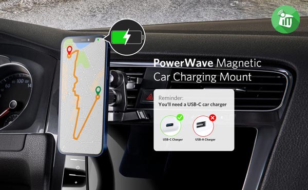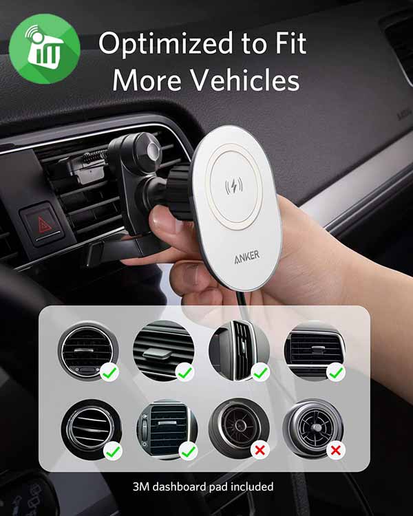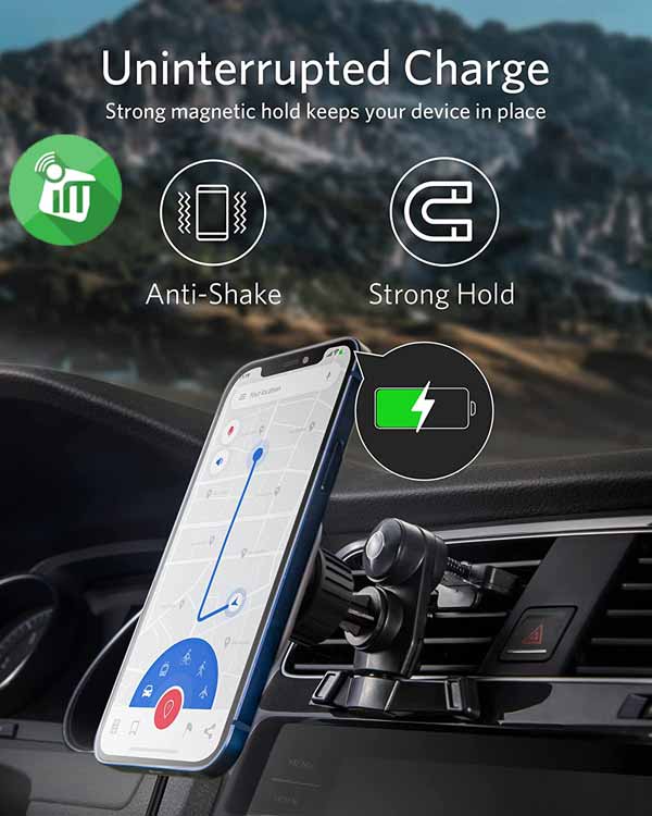 Your iPhone 13/12 series is firmly fixed by a magnet, so you can use it comfortably without worrying about vibration when the mobile phone rings. A USB-C compatible car charger (sold separately) is required to use the wireless charging function of this product.