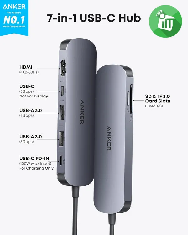 Anker A83D2 USB C 7-in-1 Multi-Port PD HDMI Hub