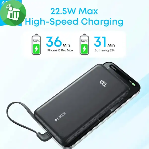 - Anker Zolo Power Bank 20000mAh 22.5W Built-In USB-C Cable