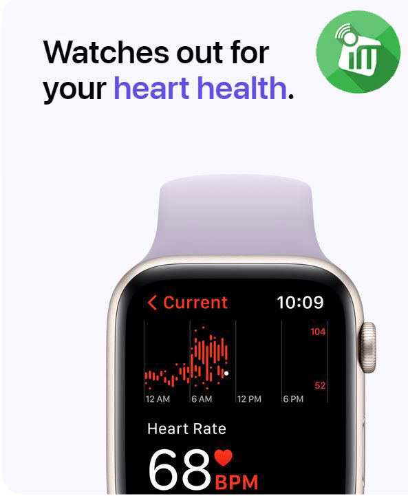 Check your heart rate at any time with the Heart Rate app. And get notifications for high or low heart rate or an irregular rhythm