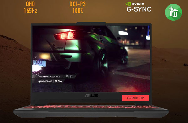 in addition, Asus TUF Gaming A15 FA507NU Keep up with the pros thanks to a QHD 165Hz display. G-SYNC synchronizes the display’s refresh rate with the GPU’s output to reduce lag, minimize stuttering, and eliminate visual tearing for ultra-smooth and lifelike gameplay. The QHD panel hits 100% of the DCI-P3 color space, reproducing colors exactly as the creator intended. Packed into an impressive 80% screen-to-body frame