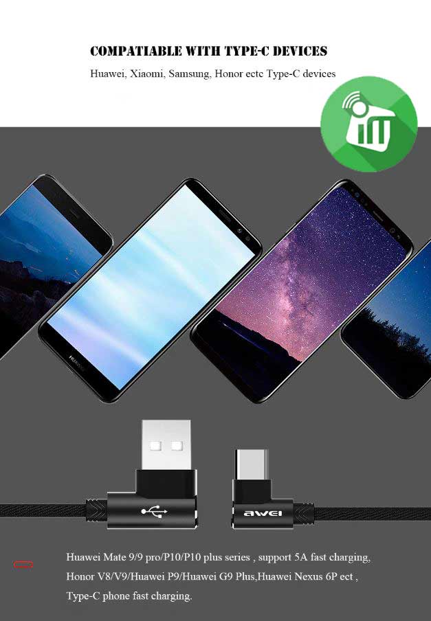 Awei CL-33 Type-C 2.4A Fast Charging Data Cable (1200mm)