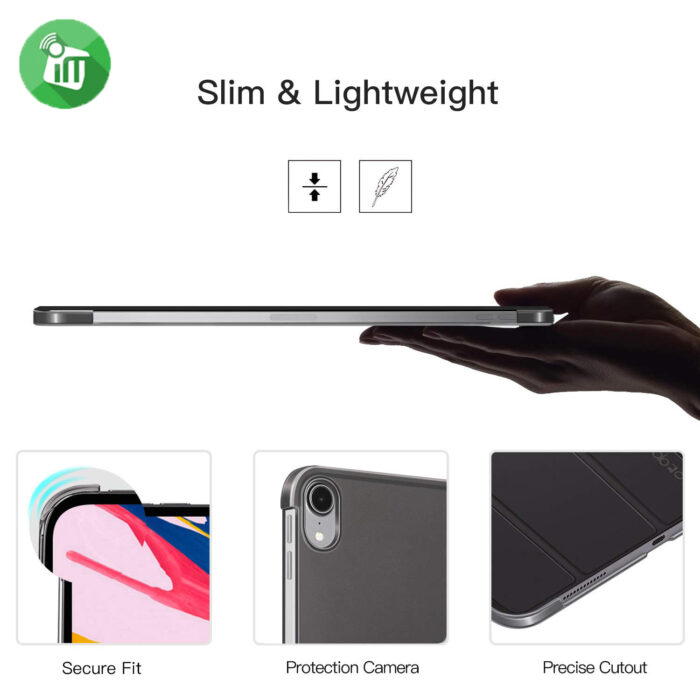 The front cover can fold into dual standing positions for movie-watching and keyboard-typing.