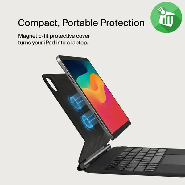 Transform your iPad into a laptop for greater productivity. The Belkin Pro Keyboard Case with Magnet Stand uses Bluetooth technology to pair to your iPad, combining the ease of use of an external keyboard with the added defense of a protective cover.
