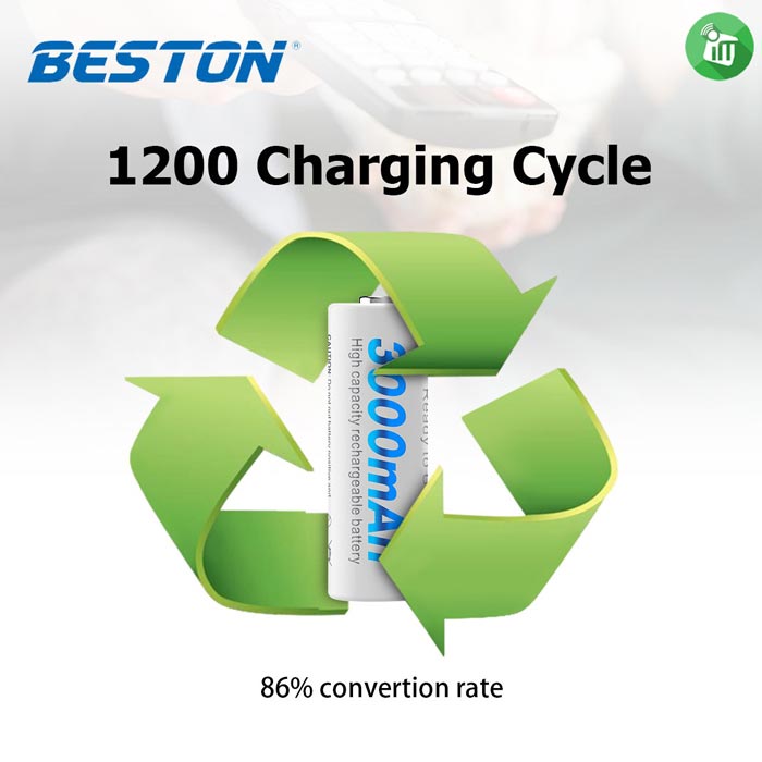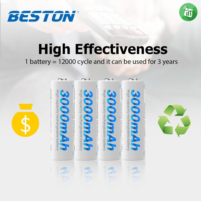 Beston 4PCS AA Rechargeable Battery 3000mAh