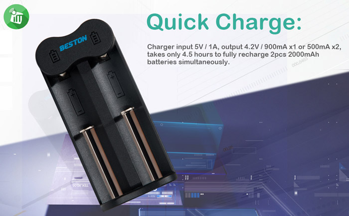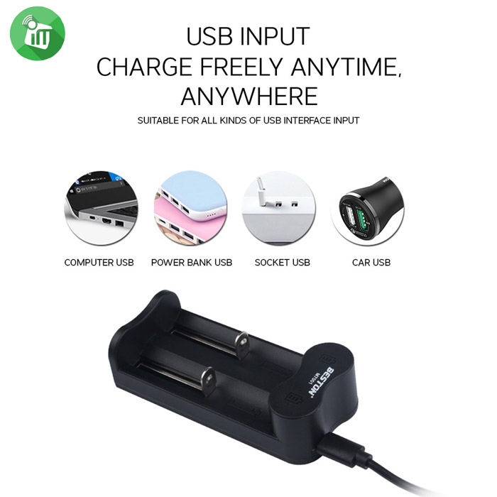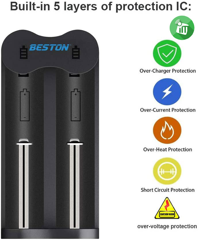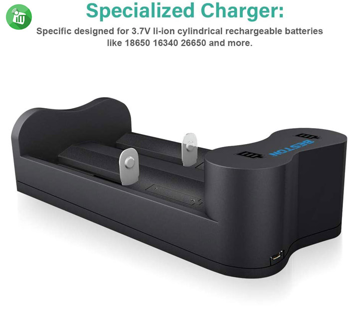 - charge for 1-2 pcs 16340/16650/17650/17670/18350/18490/18500/18650/20700/21700/26650 3.7V Rechargeable Li-ion battery