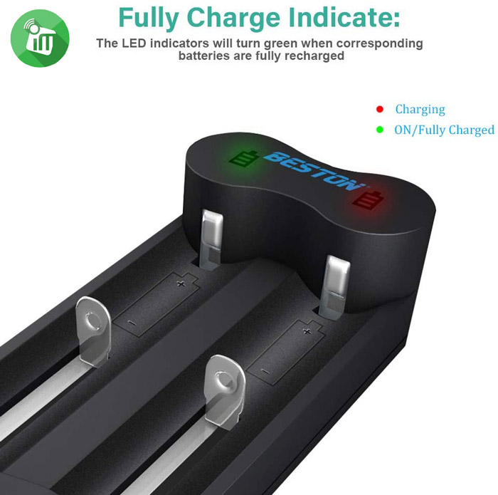 The LED indicators will turn green when corresponding batteries are fully recharged