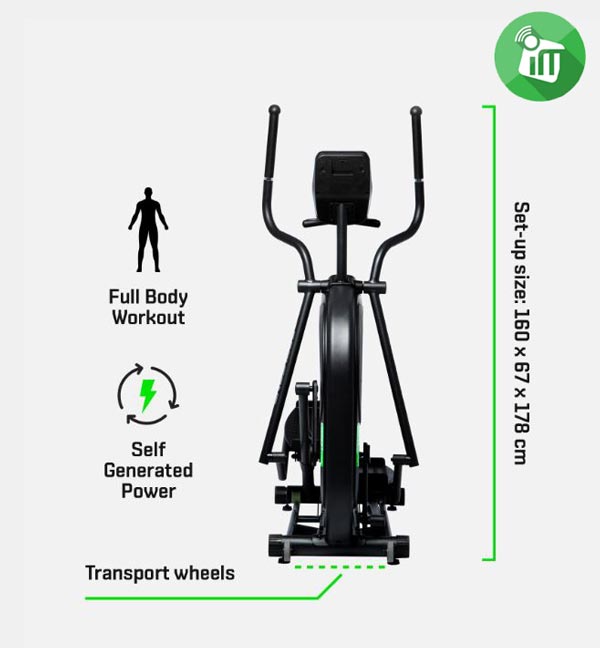 BODYTONE EVOE4 Elliptical Bike The bicycle has 4 height levelers to facilitate stability, a handle and wheels for easy transportation, and a bottle holder.