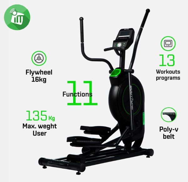 Ultra-comfort pedals padded with gel pads. 51cm stride length It incorporates the engineering of a professional elliptical, but maintaining an attractive and elegant structure, making it the ideal solution for all hotels, fitness clubs and spas that wish to offer a unique experience to their clients.