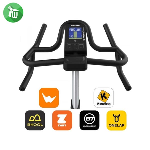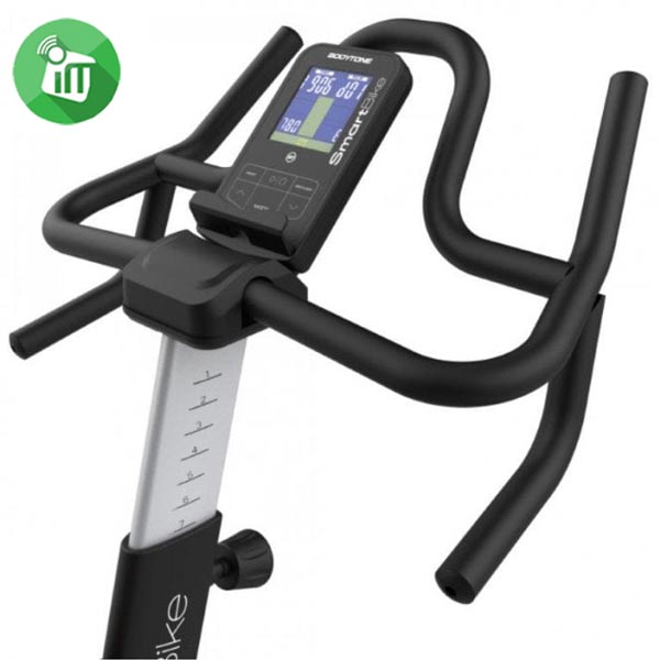 22 kg flywheel, made of cormo steel to prevent rust. Through its screen you can follow metrics such as speed, cadence (rpm), calorie consumption, time, distance and WATT. It also has 12 predefined programs, Bluetooth 4.0 connectivity and heart rate measurement using a Bluetooth heart rate monitor.