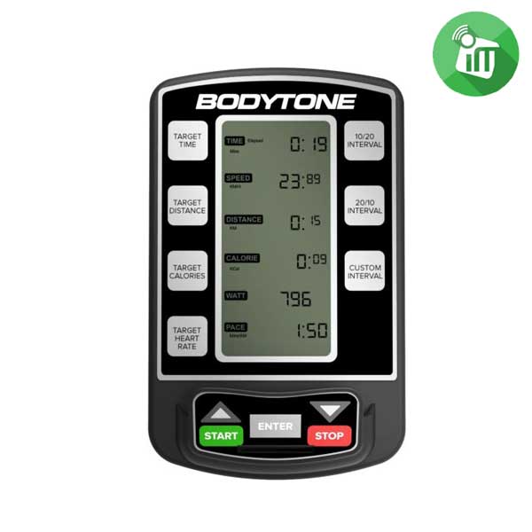 Equipped with an LCD screen to monitor your training metrics such as: Time, Distance, Calories, Speed, Heart Rate and Power (Watt). This digital console has several functions, 4 target modes, 3 flashing modes and a button panel to jump from one workout to another with minimal effort.