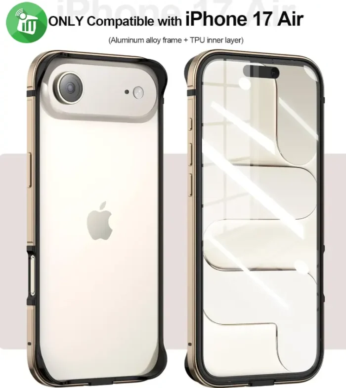 ultra-thin and lightweight iPhone 17 Air case offers essential protection without covering the back of your phone. The slim-fit protective case showcases the original look of your new smartphone without adding bulk. The metallic textured finish provides a comfortable and luxurious grip.