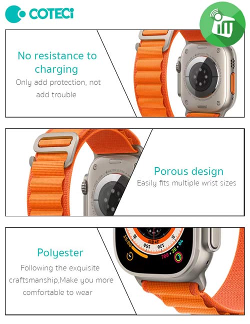 COTEetCI Alpine Loop The sport bands for iWatch comes with lugs on both sides, which locks onto iWatch interface precisely and securely. Easy and direct installation and one button removal.