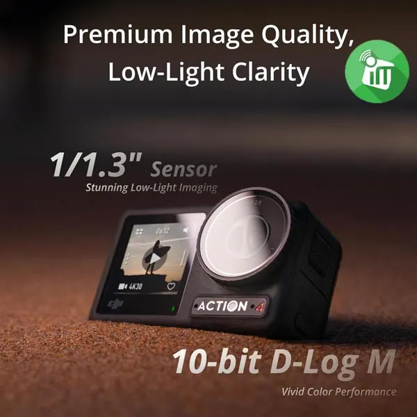 - Experience stunning image clarity and unparalleled low-light performance with the 4K action camera’s large 1/1.3-inch sensor