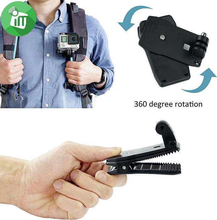 - Lets you attach your camera to a baseball cap or other 0.1″- to 0.4″-thick object for ultracompact, low-profile mounting.