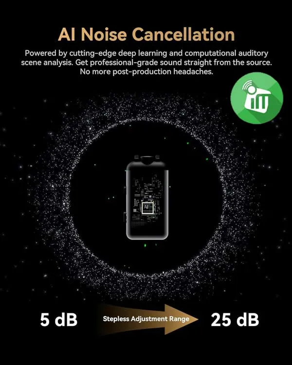 - AI Noise Cancellation – Reduces background noise for clearer voice pickup