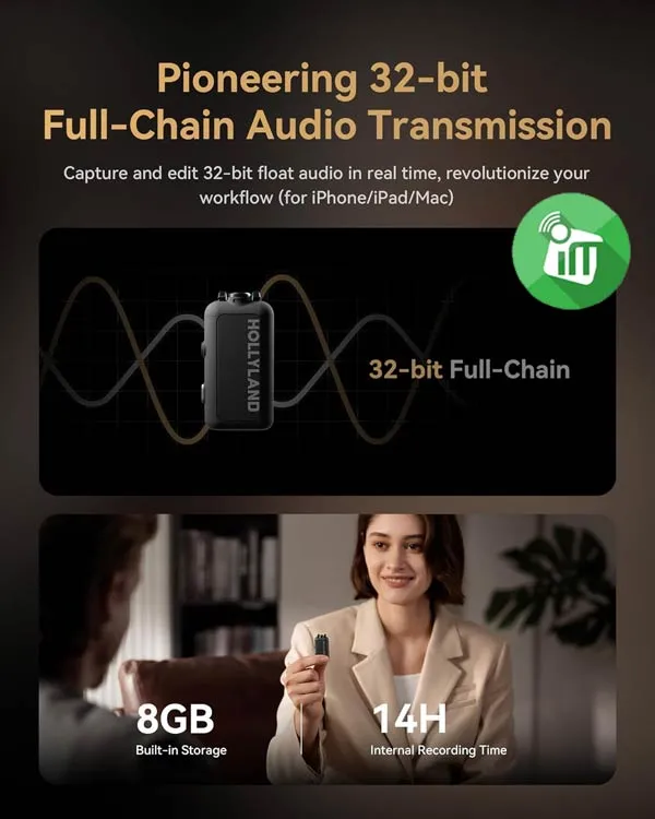 Revolutionize your workflow with the LARK MAX 2’s groundbreaking 32-bit full-chain audio transmission technology. Capture studio-quality 32-bit float audio directly into your video in real time, eliminating on-set risks and simplifying your post-production. Record and edit simultaneously, with pristine audio seamlessly integrated into every frame. It’s the perfect solution for effortless, professional-level audio on every shoot.