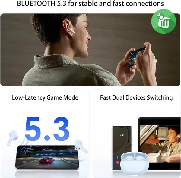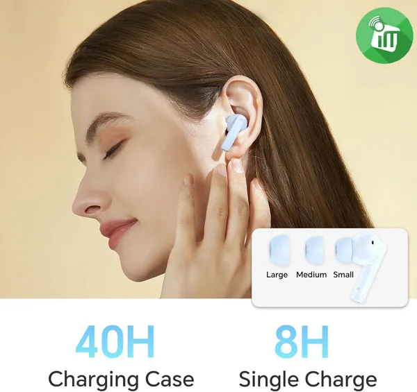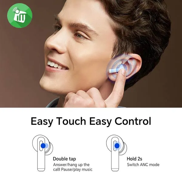 The two earbuds incorporate a total of 4 microphones, powered by Digital Signal Processing technology, to identify what the other party is saying and separate it from ambient interference so that you can listen to the conversation and not the noise