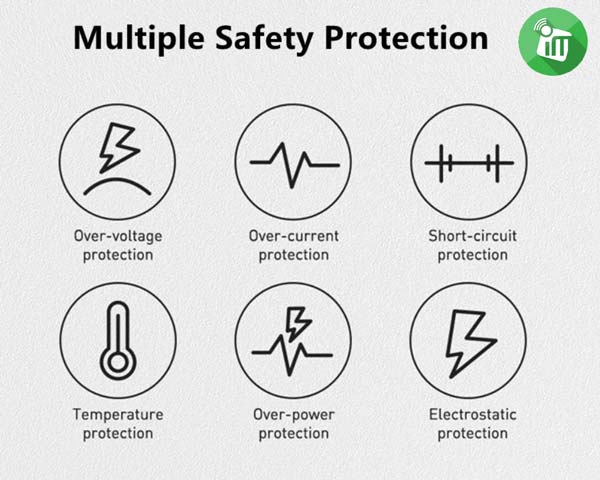 in addition,  Overcurrent protection/Overcharge protection/Overvoltage protection /Over discharge protection/Short-circuit protection/Leakage protection /Low temperature protection/High temperature protection/Surge protection/Magnetic field protection