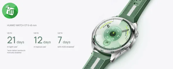 Signature strong endurance with up to 21 days battery life.1 With the innovative adoption of a high-silicon battery, the energy density surges by 37%.4 Leave the energy worries behind, and set out to break new records.