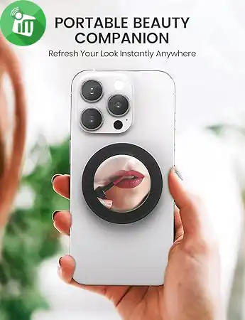 Additionally, it doubles as a mini mirror for quick touch-ups on the go.
