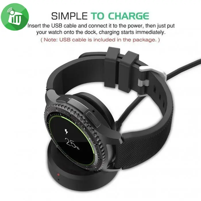 2. Provides easy way to keep the Gear S3 powered up