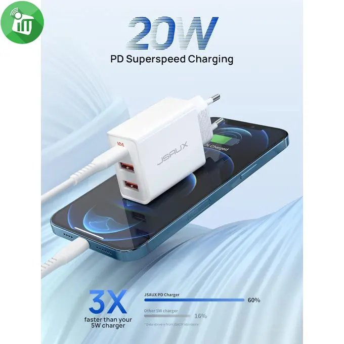 JSAUX USB-C fast charger has a built-in smart charging chip and IOA 2.0 intelligent charging system, which can effectively prevent over-current, over-voltage, overheating and short circuit to protect your phone and your personal safety.