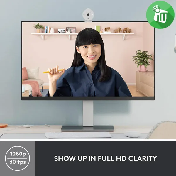 Enjoy better video meetings with the Brio 300, a sleek and compact 1080p webcam with automatic lighting correction to help you be seen clearly in challenging lighting conditions. Available in three colors to match your personality. Now you can bring your best self to every video call.