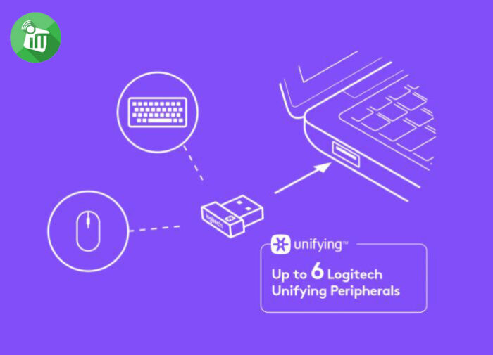 Simply plug the USB receiver into your computer or laptop to start working in seconds and get a strong, reliable connection within up to 10 meters (33 feet)2Wireless range may vary based on user, environmental and computing conditions.. Plus, you can easily pair through the same receiver up to six compatible peripherals using Logitech Unifying™ technology