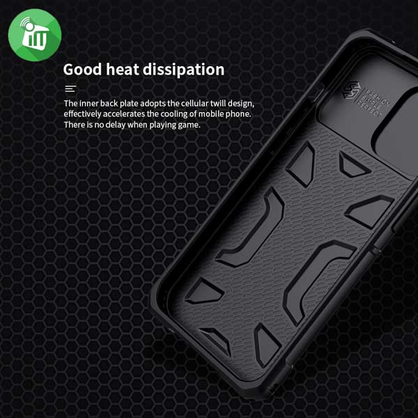 not only prevents camera from scratching, but also protects your privacy. Add anti-fall airbags on four corners. Bumpy appearance design creates an extraordinary feel, and enhances friction to prevent slipping. Honeycomb twill back plate, efficient heat dissipation; lanyard holes for double the protection.