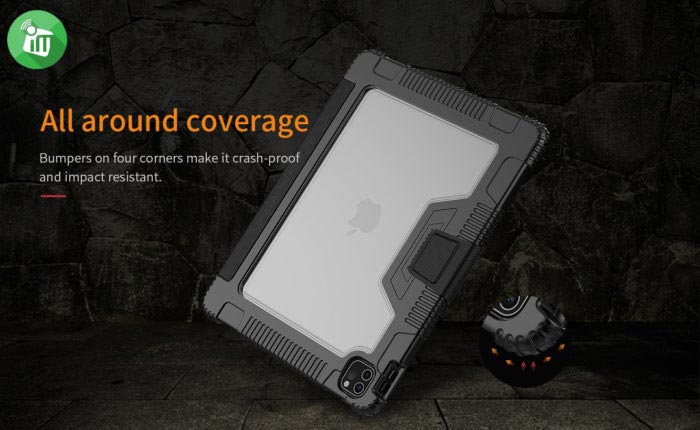 Nillkin bumper provides additional protection around the corners. Bumpers located on each corner protect your iPad from bumps and scratches. It also features a holder for your iPad pen