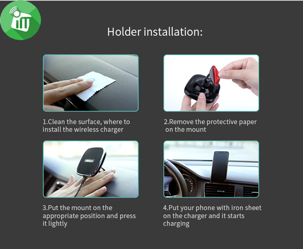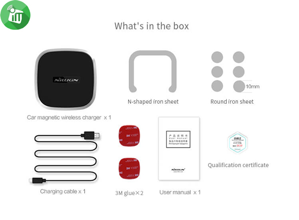 - ♦Package Contents: Nillkin Wireless Car Charger, “n” shape metal sheet, circular iron sheets*6, Micro USB cable, User Manuel.
