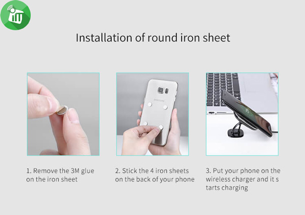 - ♦For iPhone 7/6/Plus, we highly recommend to use our Magic Case Series or N-JARL Series wireless charging case to have a perfect combo(Note: our Magic Case for iPhone 6 Plus/6s Plus and iPhone 6 gold are excluded); for Samsung phones, you can use the metal sheet to stick your phone, PLEASE DONT USE IT UNDER THE PHONE CASE, the metal sheet has to directly touch the charger.