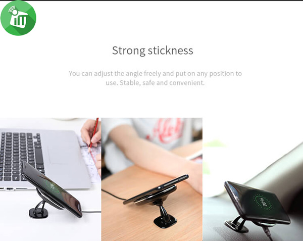 - ♦Focus on Details: Installed by 3M adhesive allows you to use it anywhere you want, not just in the car; built-in 360°rotating stainless steel ball for angle adjustment; blue indicator lights on the two sides to show the charging status.