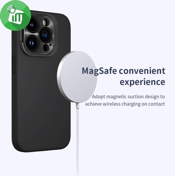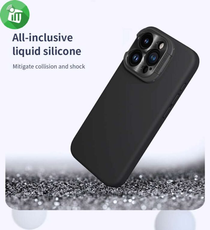 Designed specifically it is a multi-functional mobile phone protective case It features a hidden foldable stand for lens protection and kickstand functions The magnetic suction design allows for convenient charging. Made of environmentally friendly liquid silicone it offers a delicate and soft touch.