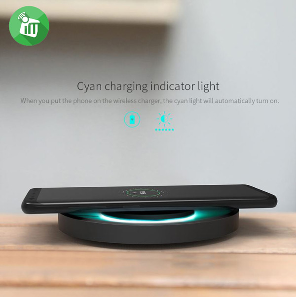 Nillkin Magic Disk 4 Colorful lights make the Magic dick 4 wireless charger special. The cyan indicator light on when it’s charging, which can be turned off by the button. Cool tech gadget on your table