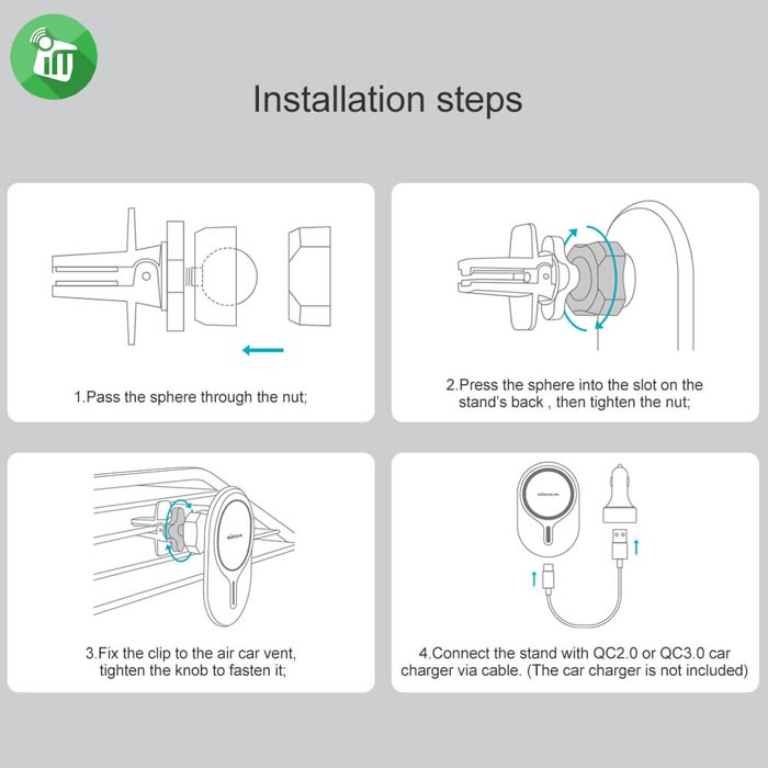 Nillkin MagRoad Magnetic Car Mount with Wireless Charging (Clip)