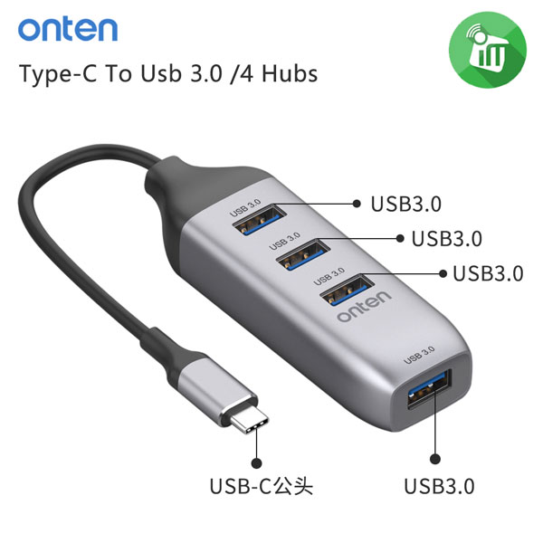 Onten 95118U USB-C to 4-Port USB 3.0 Hub