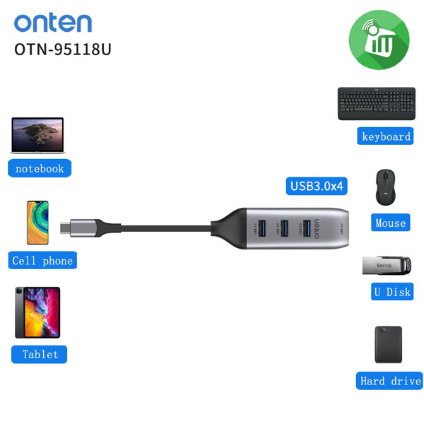 Onten 95118U USB-C USB-C In addition, By converting your computer’s USB-C port into four USB-A ports, you can continue to use all of your existing USB 3.0 devices such as flash drives, external hard drives, and printers Now you can save money and time by avoiding the added cost and hassle of purchasing new USB-C equipped peripherals.