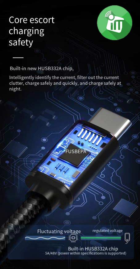Dual E-marker chips with OTP (Over-Temperature Protection) ensure safe data and power delivery Dual E-marker chips with OTP (Over-Temperature Protection) ensure charging safety