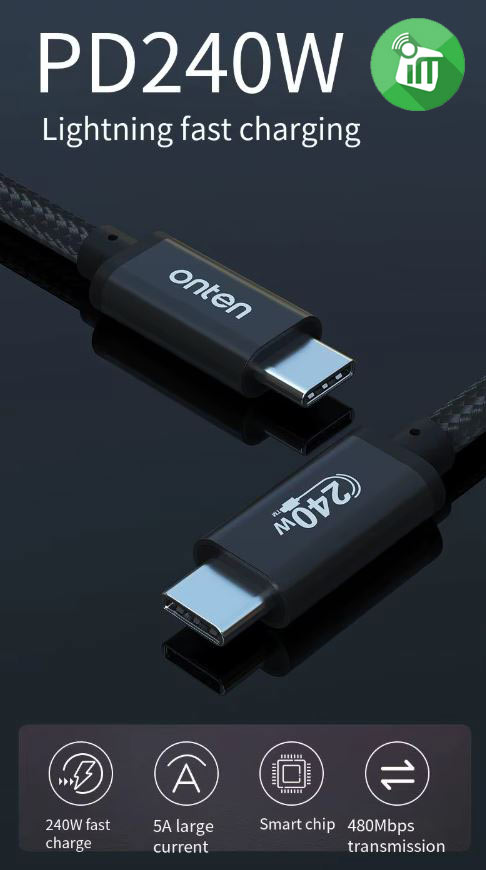 Onten Braided 480Mbps USB-C to USB-C Cable 240W (OTN-CC201) (1m)