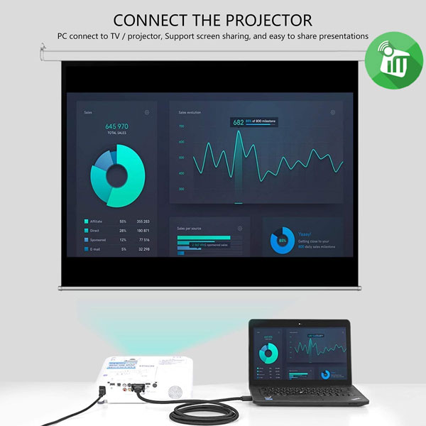 tuck this lightweight gadget into your bag or pocket to do a business presentation with your laptop and projector, or extend your desktop screen to a monitor or TV; A VGA cable is required (sold separately)