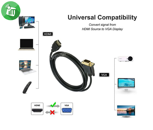 connects a computer, desktop, laptop, or other devices with HDMI port to a monitor, projector, HDTV, or other devices with VGA port;