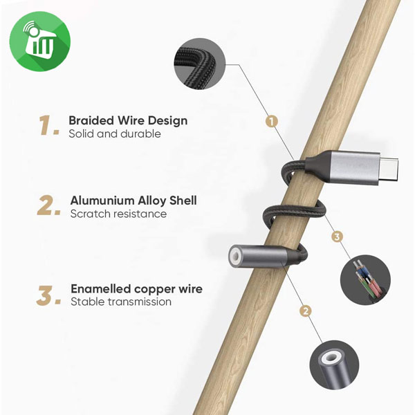 with the USB-C Headphone Adapter. This versatile USB-C to 3.5mm Audio Jack Adapter delivers superior sound quality without Bluetooth compression. Connect your USB-C devices to any 3.5mm audio jack effortlessly with this versatile USB-C to AUX to USB-C to 3.5mm adapter. It’s the perfect solution whether you’re looking for a USB C to AUX adapter or an AUX to USB C converter.
