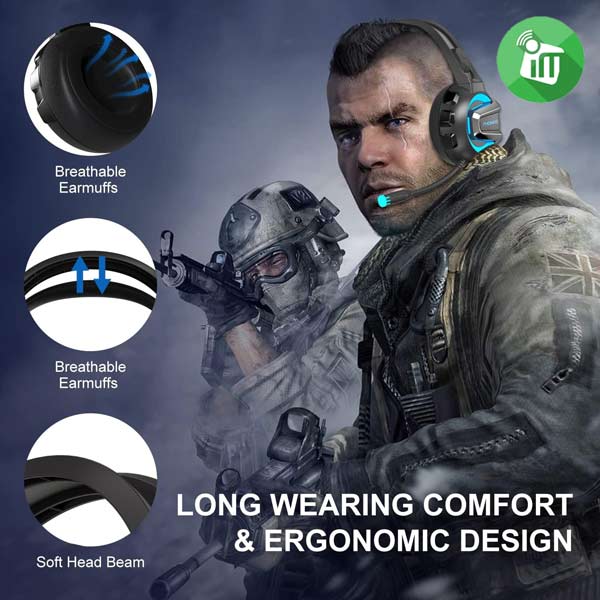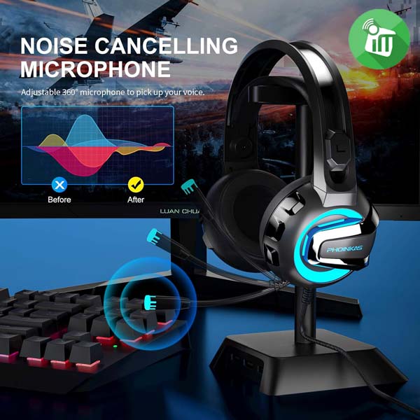 The Gaming Headset Omnidirectional adjustable highly sensitive microphone can pick up your sound sources in 360 degrees, can transmit your voice accurately, fluently, and clearly. No matter in 1V1 or teamwork, the noise-canceling microphone makes your words heard by your teammate clearly, leading to smooth in-game communication.