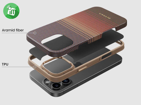 - Woven from strong yet light aramid fiber, and seamlessly blended with shockproof TPU