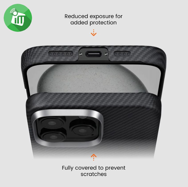 Woven from aramid fiber, a strong yet light material commonly utilized in aerospace and military gear, the iPhone 16 Pro case provides exceptional strength, lightness, and resistance to scratch, corrosion, and discoloration. Unlike carbon fiber, it will not interfere with the signal and it is non-conductive, offering long-lasting protection for your phone.